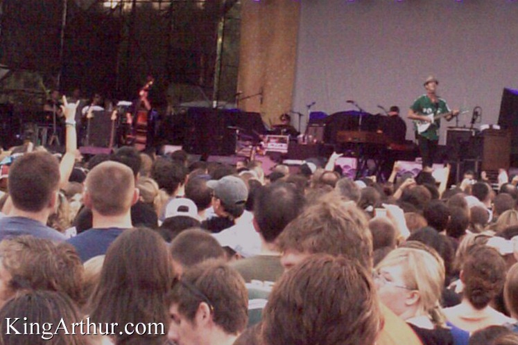 During the storm, the crowd was advised to go into the enclosed area for their own safety. All of a sudden, Bushwalla got up on a chair and started playing. Bushwalla is a good friend of Jason Mraz. For quite some time, they were roommates. Besides MC’ing the show, Bushwalla is an accomplished singer and songwriter. It was nice to see his enthusiasm and spunk up-close and in-your-face. By the end of his impromptu set, the whole crowd was singing along to “Ghetto Blaster.”